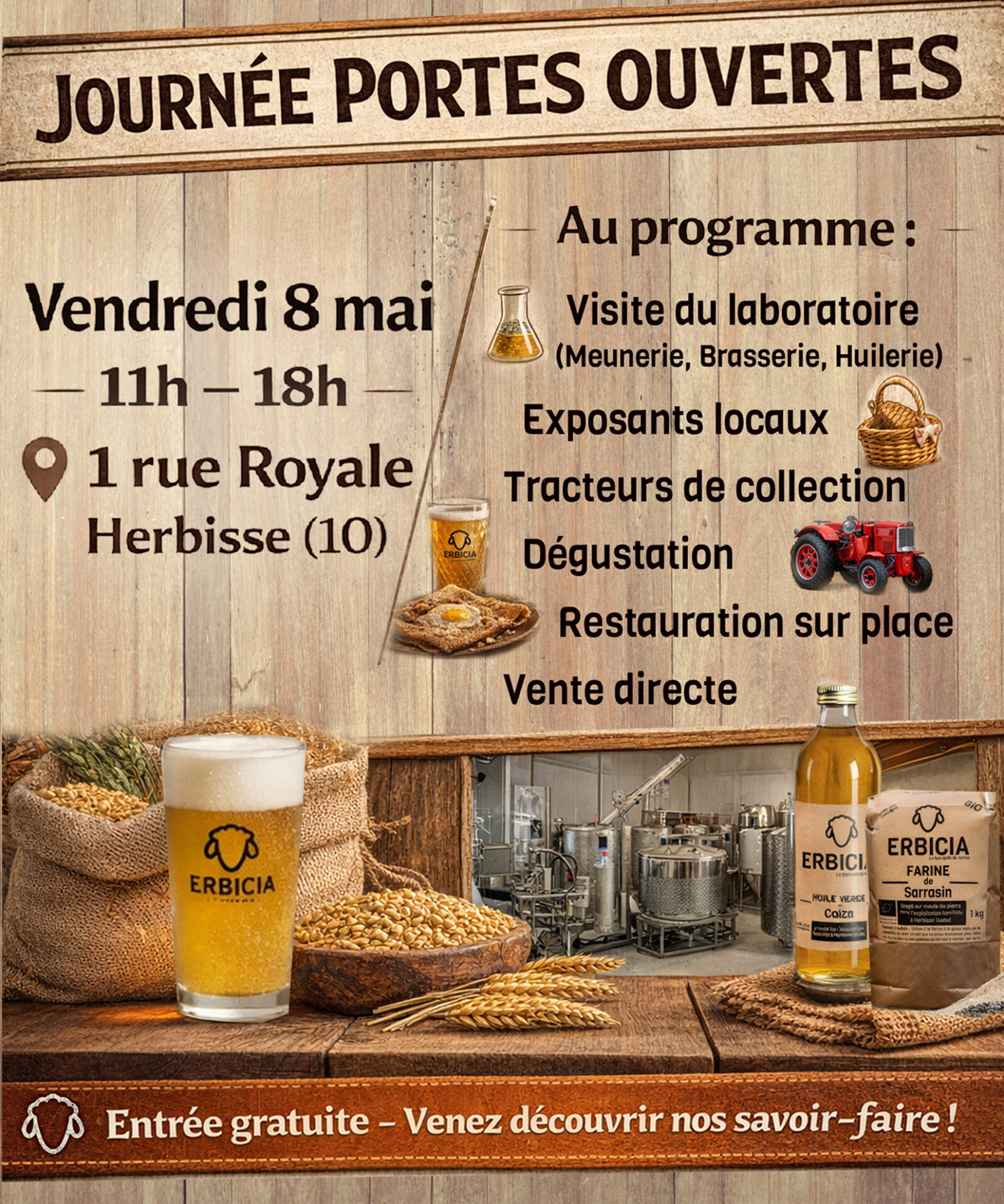 Découvrez nos produits (bières, huiles, farines…) également directement à la ferme. En achetant directement à la ferme, vous bénéficiez d’une traçabilité totale, en connaissant l’origine et les méthodes de production de nos produits. Vous soutenez également notre ferme familiale et notre démarche en faveur d’une consommation responsable et respectueuse de l’environnement.