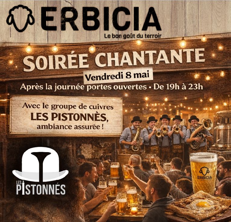 Après notre journée portes ouvertes du vendredi 8 mai, prolongez l’expérience avec une soirée à la ferme, conviviale et festive à la brasserie Erbicia.